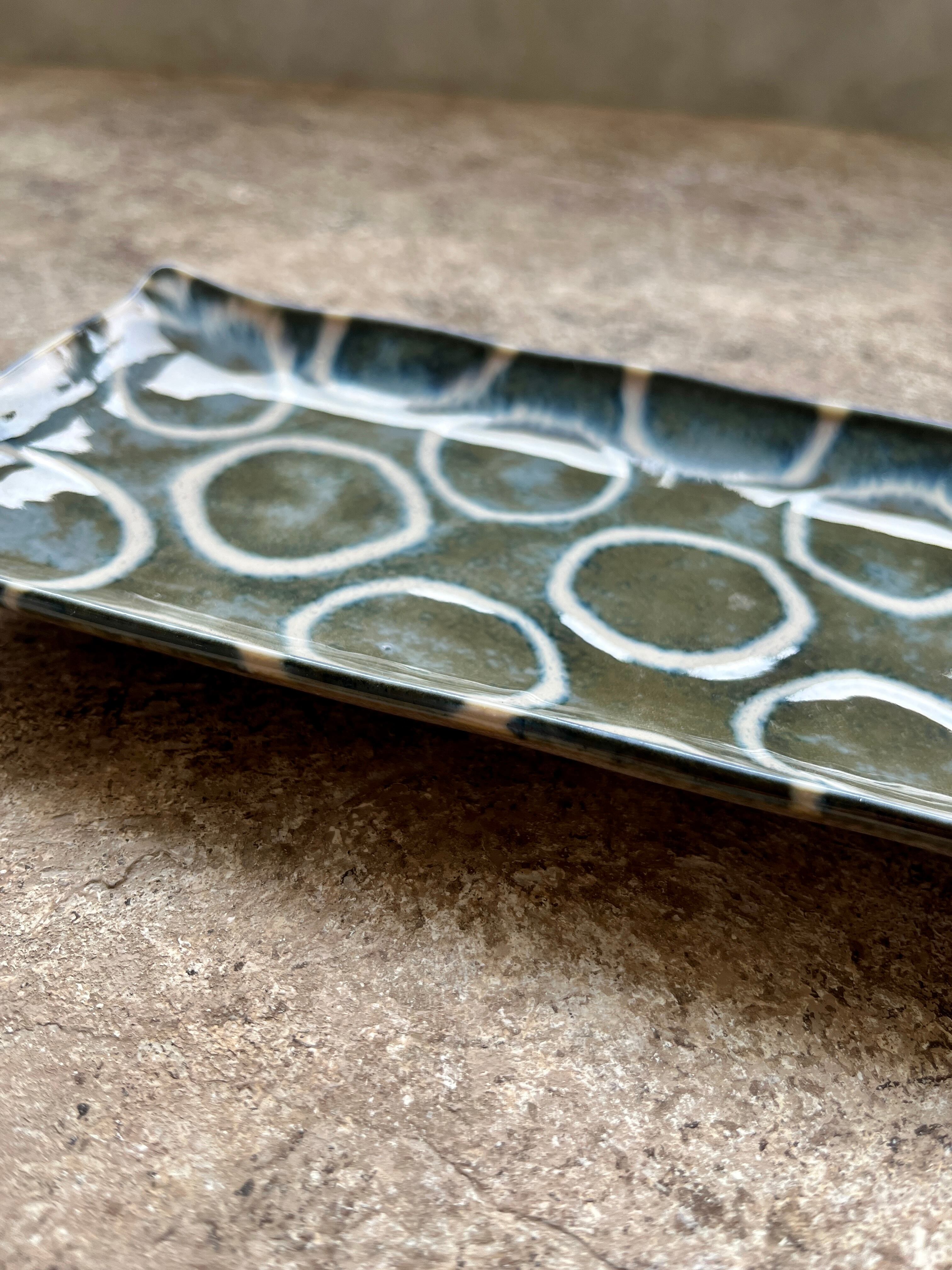 美濃焼のブルー百丸長角皿は、深い青色の上質な釉薬が施され、繊細な柄が彩りを添えます。食卓を彩る一皿として、ご家族や大切な人との食事を特別なひとときにしてくれます。 ☆サイズ 横:280mm 幅:110㎜ 高さ:23㎜
